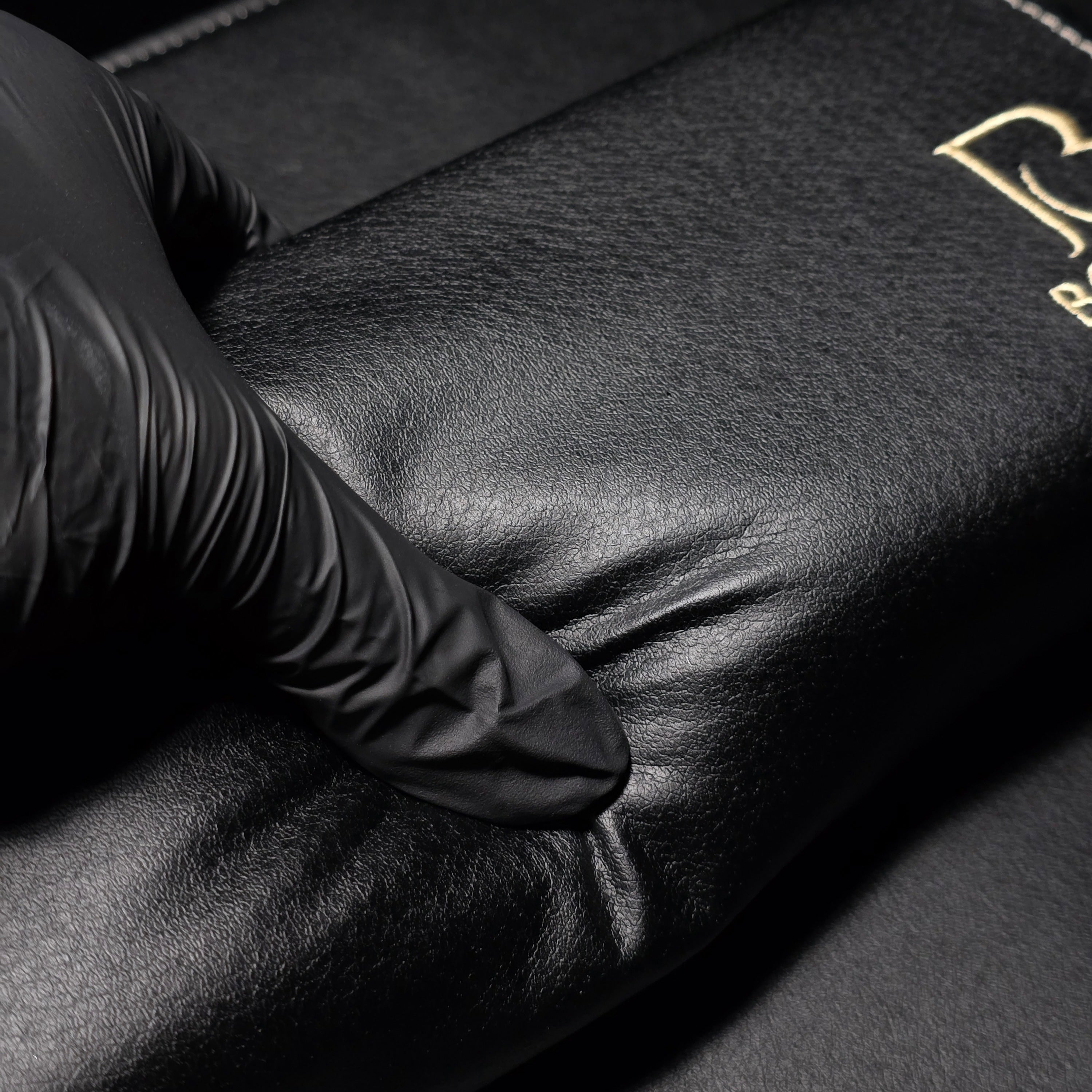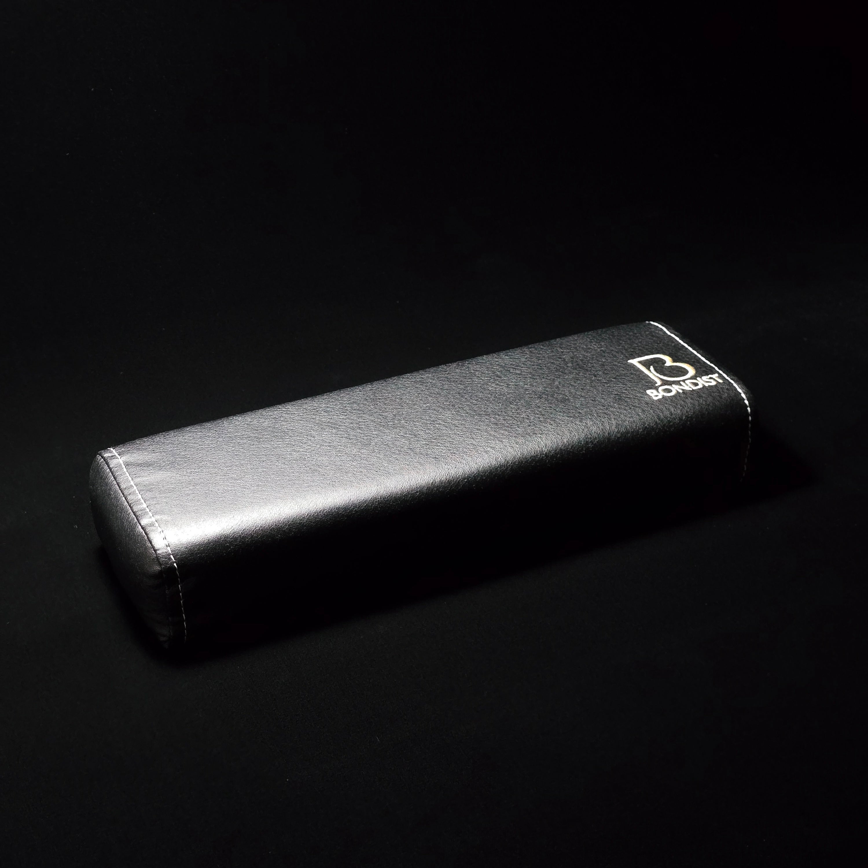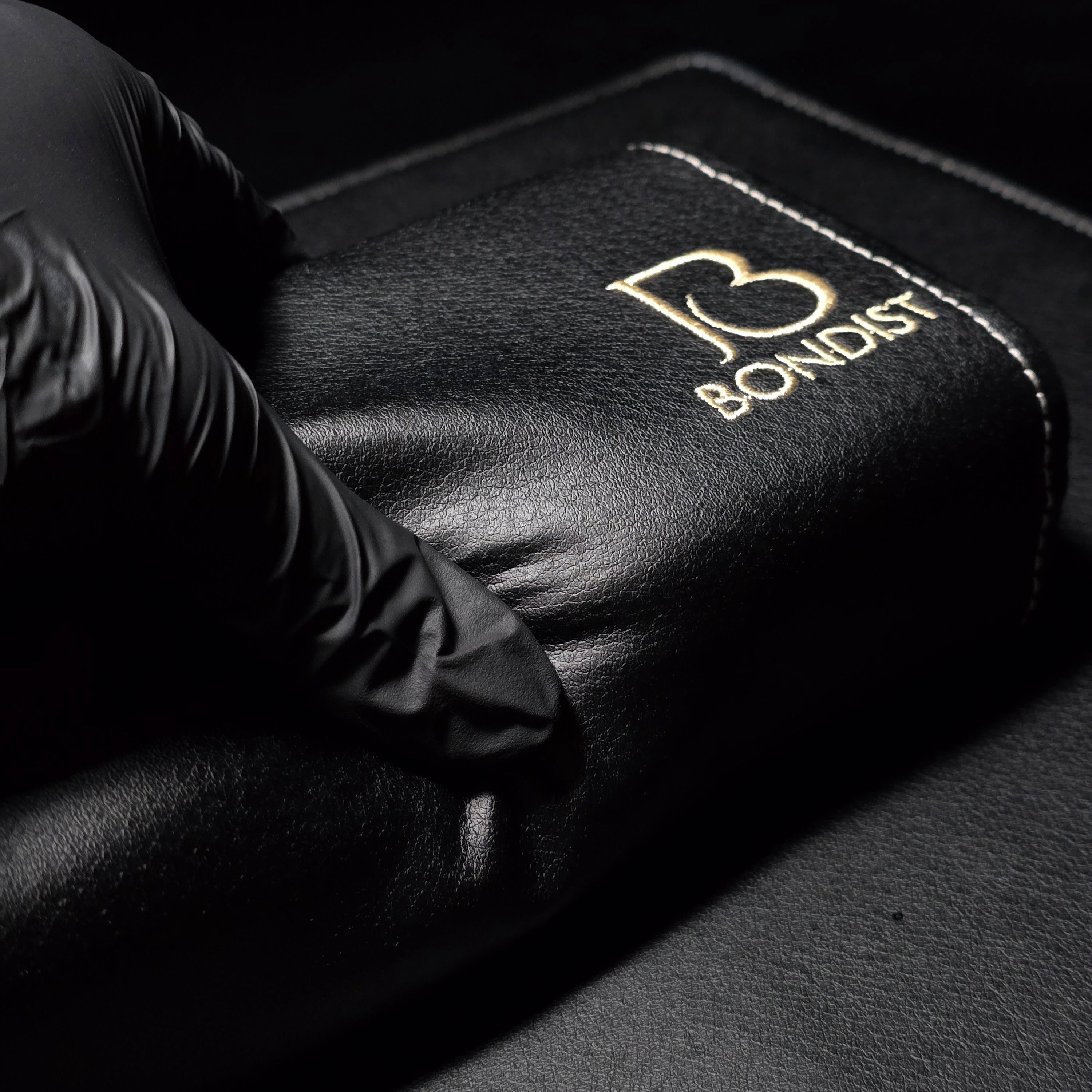 高級感のある黒のレザー調にBONDISTのロゴをゴールドの糸で刺繍がしてあります。
