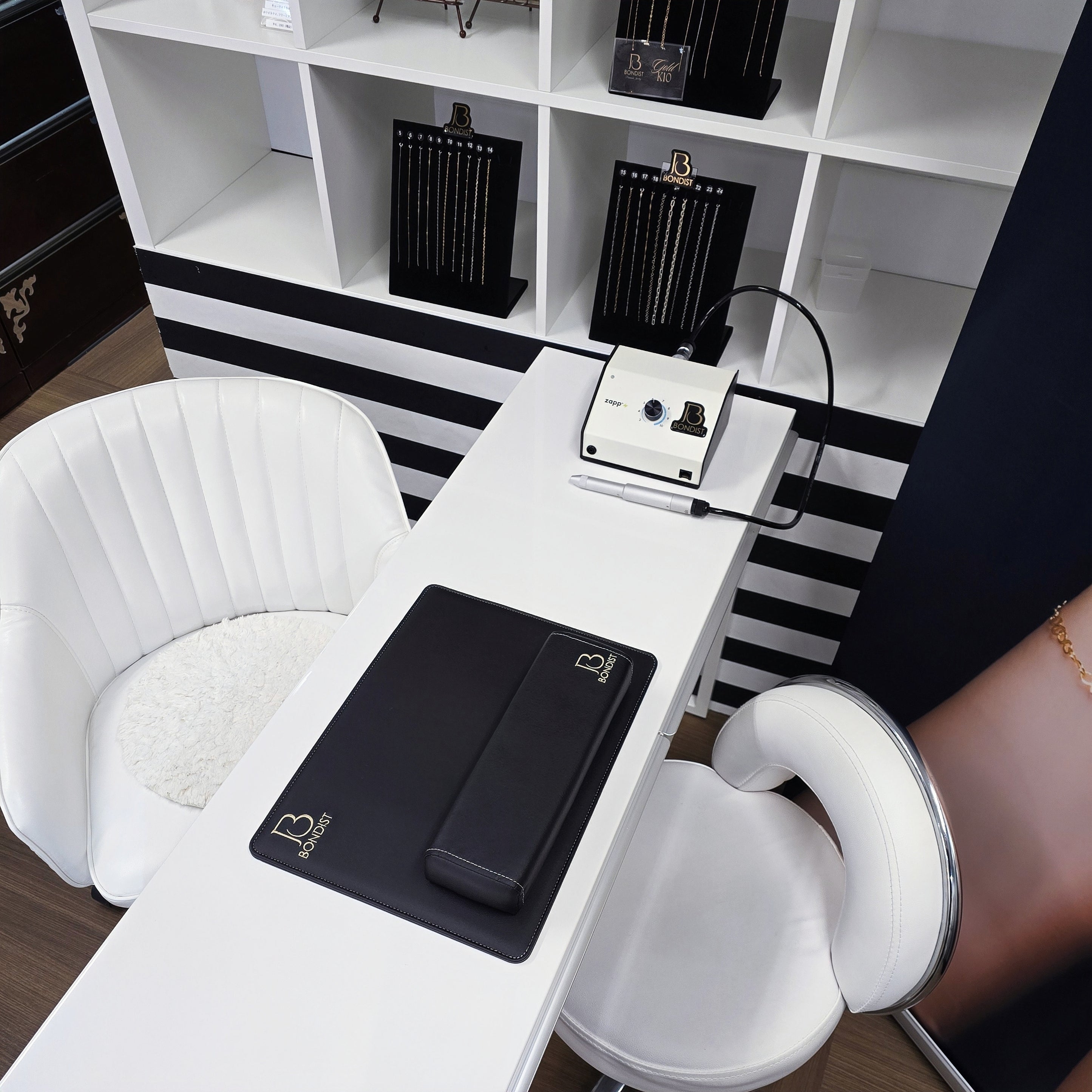 チェーンのゴールドやシルバーがとても見やすく施術がしやすいです。